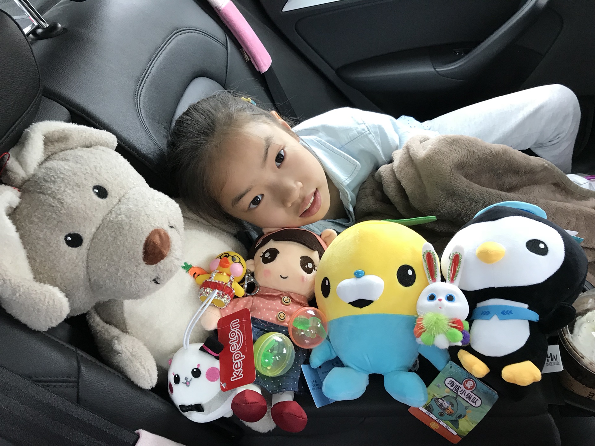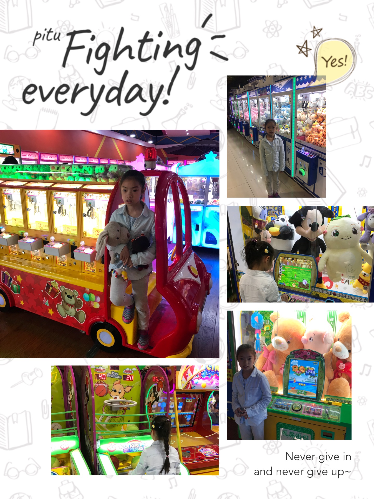 吃饭前路过时就已经瞄到了2个抓娃娃的游艺厅,公主是不会错过这样的机会的,按惯例,抓娃娃走一波,公主第一次玩乌龟家族就中了一个“欢乐奖”。