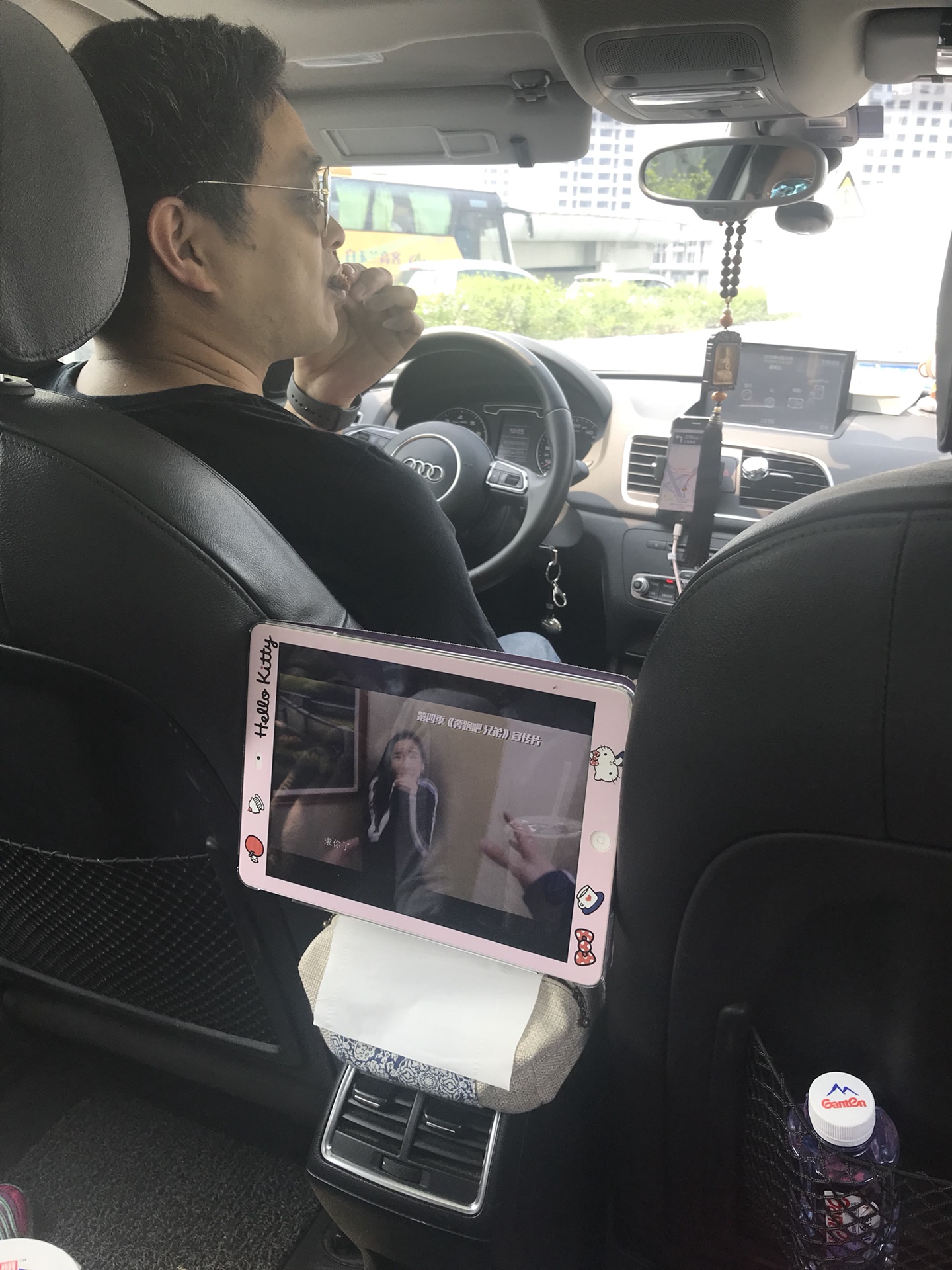 驾驶员啃着鸭膀,我们娘俩坐后排看着《奔跑吧》,就这么笃悠悠的上路了。